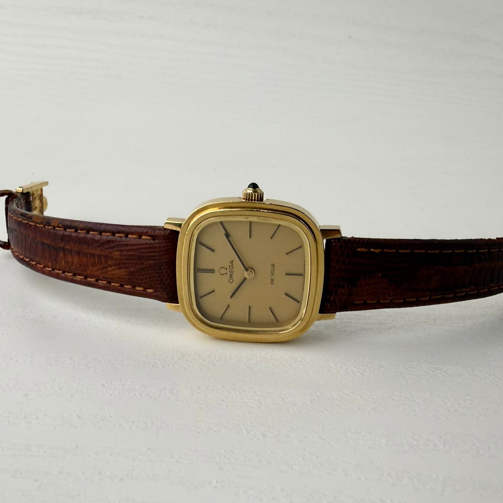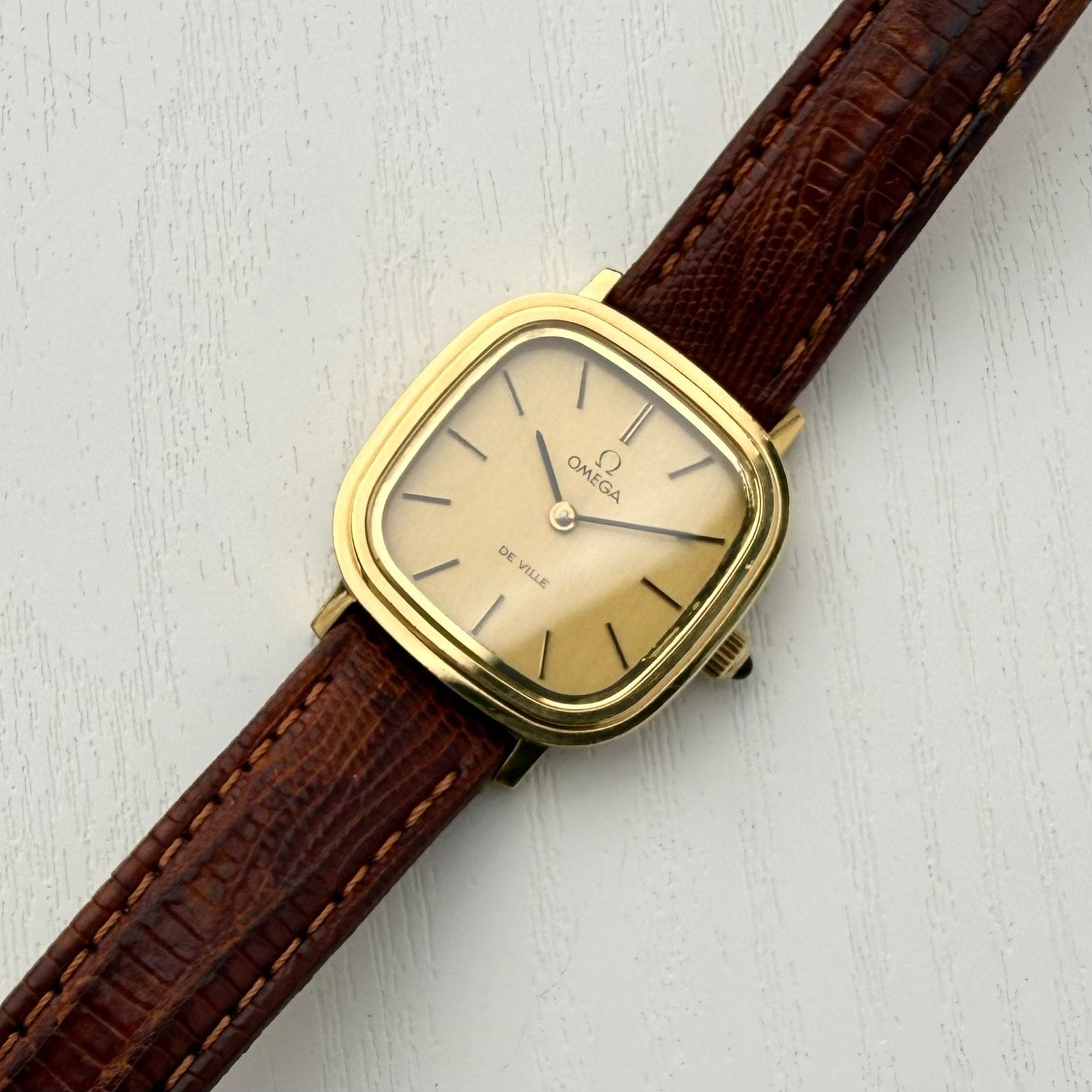 She’s small, golden, and graceful — just like your style. 1977 omga DeVille, for the woman who loves timeless beauty